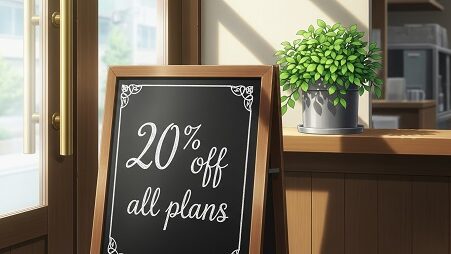 40%割引です(お友達紹介プログラムの10%を含む)。金額だと‐114万円です(契約タイプ・プラン・期間の最大値)。